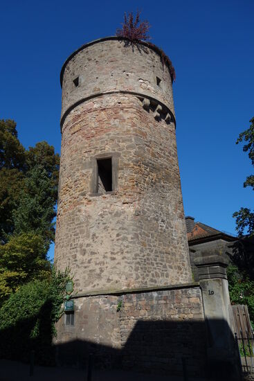 Auf dem Weg in die Innenstadt passieren wir den Hexenturm. Der im 12. Jahrhundert erbaute Turm war Teil der inneren Stadtmauer und Teil des Nordtores. Tor und Turm grenzten die Stadt vom Klosterbezirk ab. Der Hexenturm ist der am besten erhaltene Turm der mittelalterlichen Stadtbefestigung Fuldas.