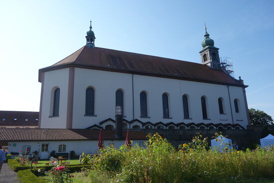 Neben der Kirche liegt, hinter einer hohen Mauer verborgen, der weitläufige Klostergarten, der heute für alle Besucher des Frauenbergs zugänglich ist und zum Verweilen einlädt.