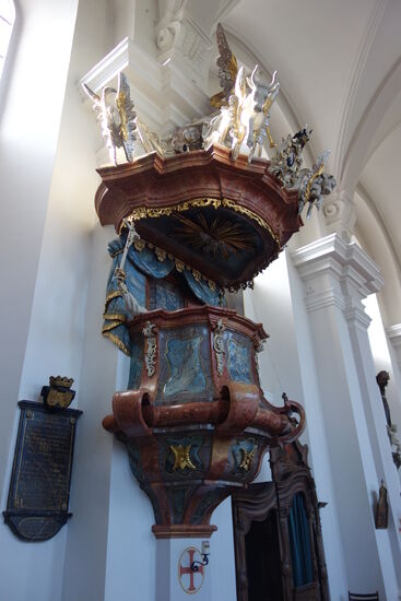 Johann Bernhard Schenk von Schweinsberg 1626-31 errichtet, erst 1678 konnte der Kirchenbau unter Bernhard Gustav v. Baden-Durlach vollendet werden.