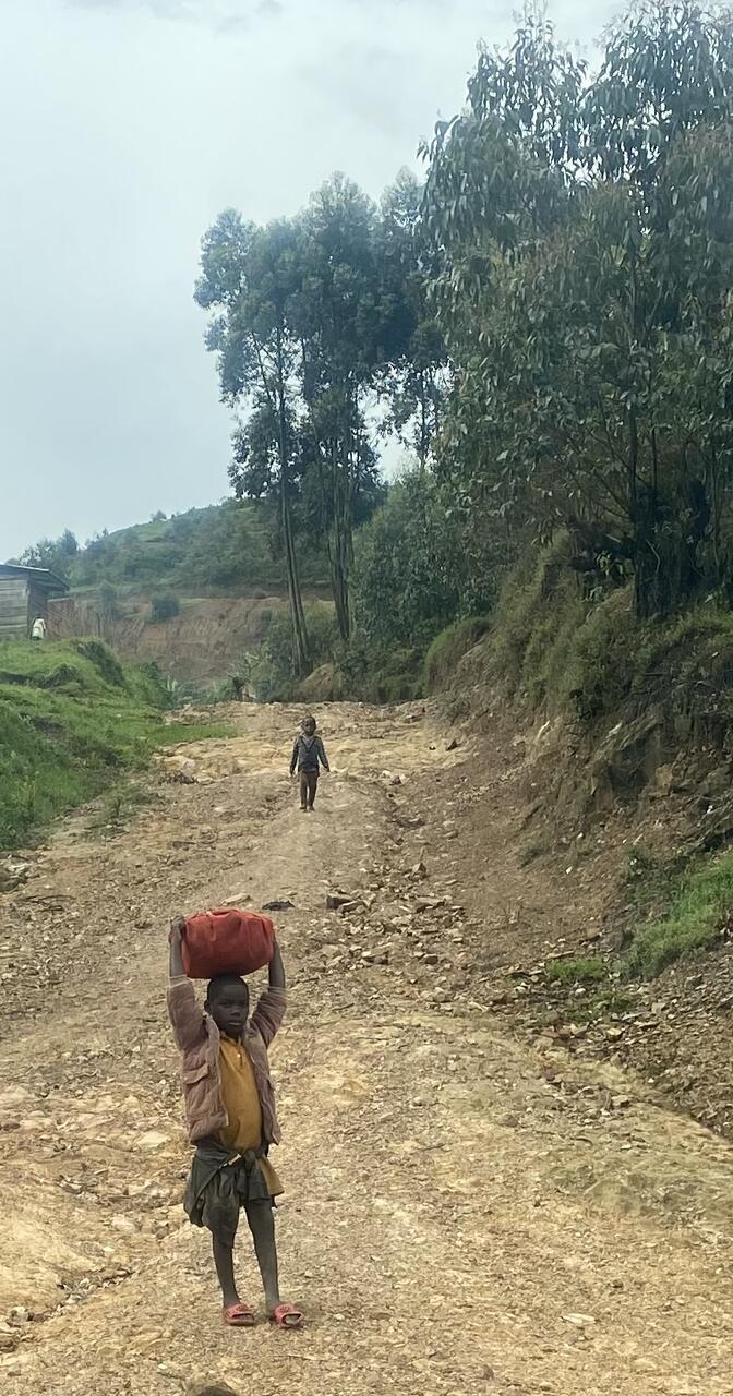 Auf dem Rückweg sehen wir wieder viele Kinder. Rechts hinter dem Jungen ein Mädchen mit Reifen und Stock - damit treiben sie diesen an und spielen. Man sieht dies so oft. So genügsam diese Kinder.