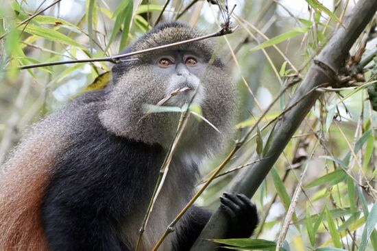 Golden Monkey Trekking. Außer uns Beiden sind nur noch ein Ehepaar aus Kentucky USA dabei. Wir verstehen uns direkt. 5 Guides, Ranger (mit ihren Kalschnikows) und Porter begleiten uns. Später kommen noch 3 Tracker hinzu. Die sind bereits seit 7 Uhr unterwegs und suchen die Golden Monkeys