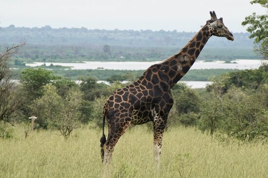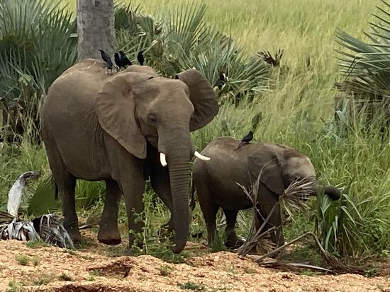 Leider sehen wir 2x Giraffen, die schwer am Bein verletzt sind von Schlingen , die von Wilderern -meist aus dem Kongo- gelegt wurden