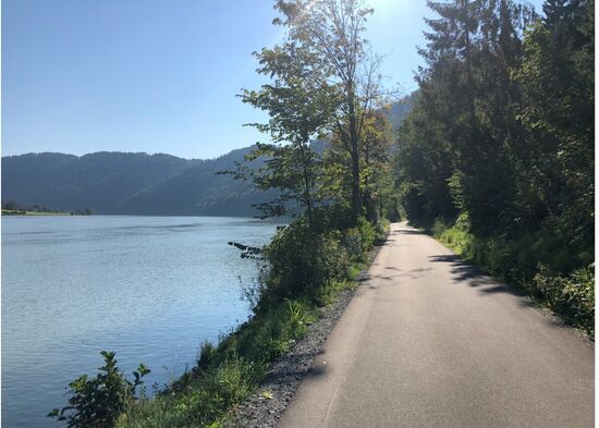 Der Radweg führte direkt zum Campingplatz in Au. Der Chef in der Rezeption liebte seinen Job. Echt cool. Toller Platz.