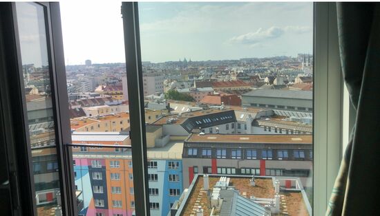 Ich checkte ein. Mein Rad musste ich zu einer Fahrradstation zum Hauptbahnhof bringen. Ging alles super. Ich hatte ein Zimmer mit Ausblick über Wien. Hammer.