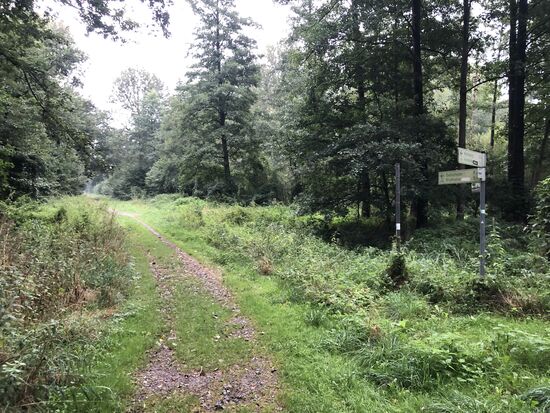 Ich fuhr zunächst direkt am Mittellandkanal bis ich über eine Brücke nach Vorsfelde Süd gelangte. Ab hier gelangte ich in das Biosphärenreservat Drömling und den Forst Danndorf. Gut, dass es hier noch nicht regnete, denn die Waldwege waren ohnehin schon mit einem überladenen Rad schlecht zu fahren. Trotzdem war der Weg gut ausgeschildert, auch wenn mal ein Schild einfach auf dem Boden lag.