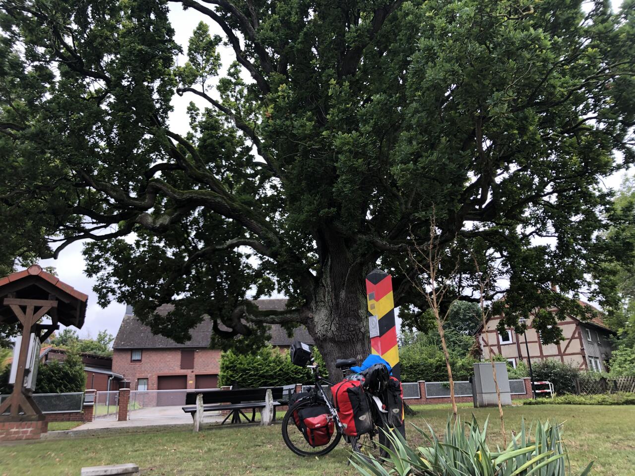 In Saalsdorf auf der Niedersächsischen Seite kam ich an eine riesengroße Eiche mit Grenzpfahl.