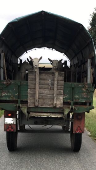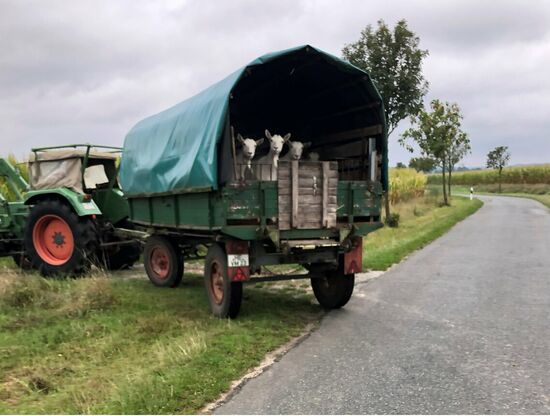 Die Dörfer hier waren menschenleer, irgendwie bedrückend. Auf einmal preschte ein Trecker mit einem Anhänger voll Ziegen an mir vorbei. Ich fuhr ihm etwas hinterher.