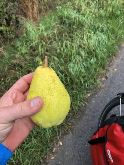 Es folgte eine einsame Strecke. An der Straße und an den Wegen standen ab hier überall Birnen- und Apfelbäume.