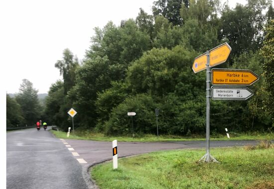 In Beendorf kam ich an einen Gedenkstein für die Opfer des Nationalsozialismus. Hier begegnete ich einem holländischen Paar, welches mit Rädern auf dem Weg von Hamburg nach Bamberg war. Sie suchten den Weg nach Marienborn um zu ihrem heutigen Etappenziel Vienenburg zu gelangen. Sie fuhren eine ganze Zeit vor mir. In diesem Abschnitt war es echt sehr hügelig. Ich kämpfte mich bei schlechtem Wetter Richtung Wanzleben