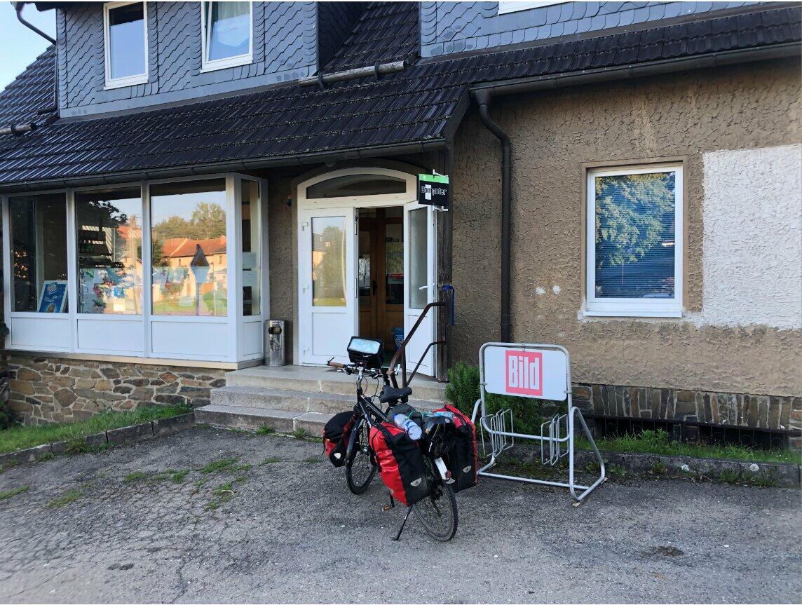 In Drognitz kam ich an einen kleinen Kaufmannsladen vorbei. Diese kleinen Läden werden leider immer seltener. Aber der Laden war echt kultig. Ich deckte mich hier mit Getränken und der Verpflegung für den heutigen Tag ein.
