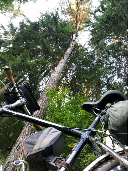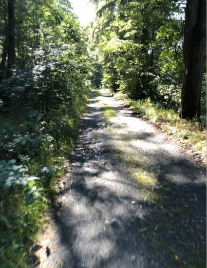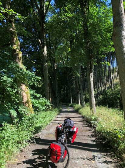 Auf dem Waldweg fuhr ich leider einmal zu schnell über einen kleinen Hügel, so dass sich meine Lenkertasche öffnete und alles rausfiel. Es ging aber zum Glück nichts kaputt und ich konnte alles wieder einsammeln.