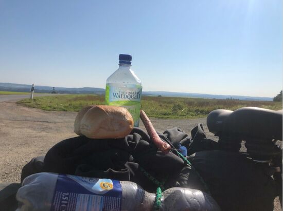 Auf der Strecke zwischen Remptendorf und Ebersdorf packte ich meinen Proviant aus und machte eine kleine Pause. Es war mittlerweile so eine schöne Tour. Die Sonne kam raus und ich mochte diese Gegend. Echt schön durch Thüringen zu radeln.