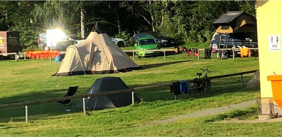 Nachdem mein Zelt stand ging ich duschen und anschließend zur Rezeption. Hier konnte ich einen Adapterstecker für den Stromanschluss auf der Wiese kaufen. So konnte ich das Handy und die Powerbank zeltnah aufladen.