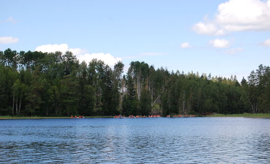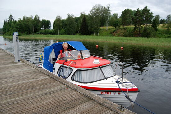Vor der Weiterfahrt tankten wir noch einmal, dann ging es weiter in Richtung Norden. Durch die drei Schleusen von Lennartsfors erreichten wir den See Foxen. In Richtung Osten ist er sehr verzweigt. Hier waren wieder viele Kanadier unterwegs. Alle möglichen Landeplätze waren von ihnen bevölkert. So blieben wir über Nacht in dem kleinen Gästehafen Holmerudsfors. Am Abend gab es einen tüchtigen Regenguß. Leider war diesem unser Boot nicht ganz gewachsen, an einigen Stellen tropfte es. Aber der Regen war schnell vorbei.