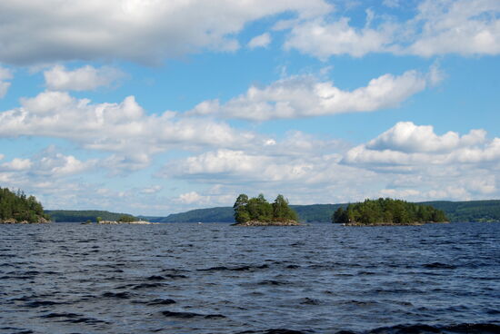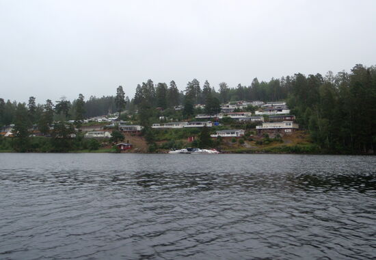 Bis nach Ed wollten wir nicht fahren. So umrundeten wir am nächsten Tag nur einige Inseln und fuhren dann wieder nach Norden. Über den südlichen Teil des Foxen erreichten wir die Schleusen von Lennartsfors. Hier machten wir nach dem Durchschleusen Kafferast und aßen Eis. Auf dem Lelång ging es dann weiter. Wir suchten einen freien Übernachtungsplatz. Aber entweder waren die Plätze von Paddlern besetzt oder der Wind stand ungünstig darauf. So fuhren wir weiter bis zum Gästehafen von Gustavsfors. Hier war ein Knotenpunkt für Kanuwanderer.