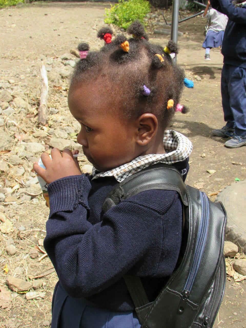 Gegen 10Uhr machen wir uns auf den Weg, zu einem der vielen Projekte hier in Tansania. Afroplan ist in Usa River. Wir sind zu viert. Laura, Vera, Eireen und ich. Als wir mit dem Tuc Tuc losfahren, ist der Kofferraum voll mit Heften, Stiften, Saft. und einiges mehr. Das haben Laura und Vera in den letzten Tagen besorgt. Ich habe T- Shirts im Gepäck und unterwegs kaufen wir noch 60 Bananen.