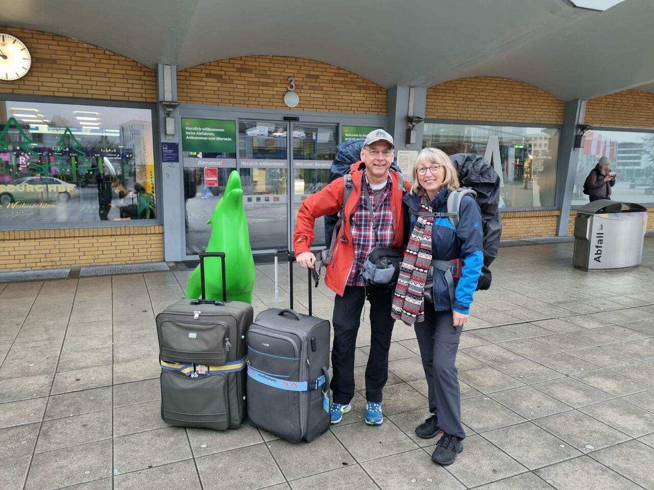 Mein Sohn fährt uns 9:40Uhr zum Bahnhof nach Wolfsburg. Dort macht er noch ein Foto von uns, es folgen noch ein paar Umarmungen und dann kann das Abenteuer Tansania starten.
