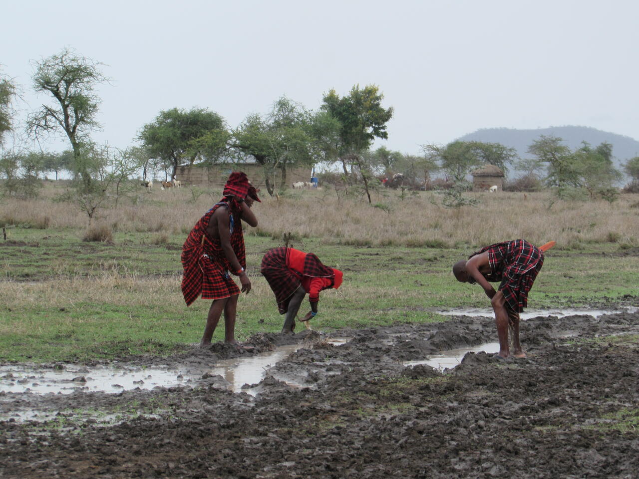 Letzte Nacht gab es den langersehnten Regen. Darauf haben die Massai seit Wochen gewartet. Alles war staub trocken, Tiere starben und die Frauen gruben in ausgetrockneten Flussbetten nach Trinkwasser.