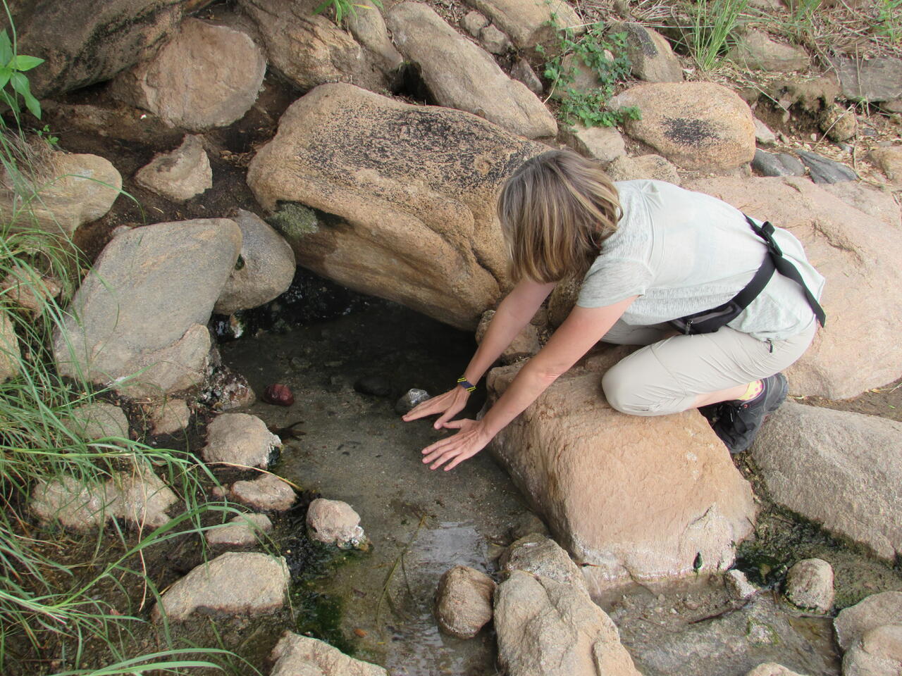 Dieser Rastplatz bietet einen Bick auf die Klippen des afrikanischen Grabenbruchs. Unterhalb am See findet man die heißen Quellen. Diese sind jetzt unser Ziel. Wenn man sich mit dem Wasser wäscht, sollen die Wünsche in Erfüllung gehen. Nix wie hin.