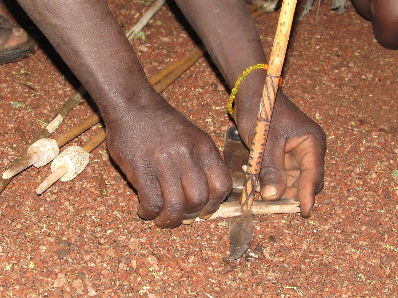 Nach einer Regen reichen Nacht sind wir heute bereits um 5:30Uhr aufgebrochen um die Hadzabe zu besuchen. Dieser Stamm ist bereits auf ca. 1000 Menschen zusammen geschrumpft. Ihr durchschnittliches Alter liegt bei 40- 45Jahren. Sie leben in kleinen Gruppen von ca. 25- 30 Personen zusammen. Die Frauen bekommen ca. 5 Kinder, von denen aber nur ca. drei das fünfte Lebensjahr erreichen. Sie leben ausschließlich von der Jagd und von dem was sie in der Natur sammeln können. Ihre Behausung ist winzig und besteht aus Materialien der Natur. Das Natur Volk ist im Buschland kaum zu finden, da sie alle zwei bis drei Monate weiter ziehen. Ihre einzigen Haustiere sind Hunde, die ihnen bei der Jagd von Bamboos, Buschbabys, Vögel und anderen Tieren helfen.
