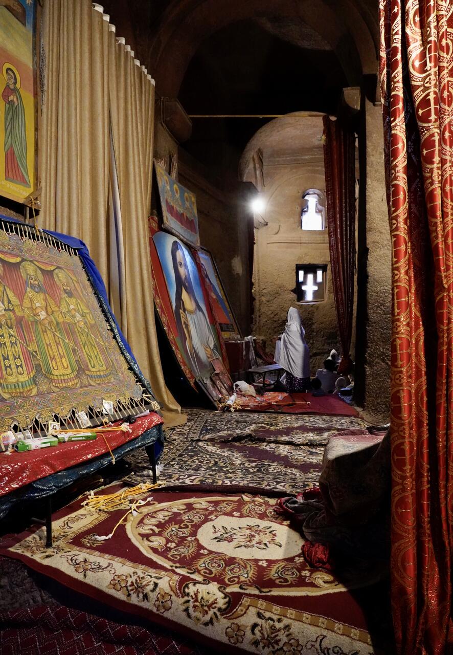In vielen Felsen sieht man kleine Höhlen, in denen geistliche sich zurückziehen und das Gebet suchen. Hier nächtigen sie auch teilweise. Viele Priester aus ganz Afrika kommen hierher. Einige übernachten dann bei den Kirchen. So wie es vor Jahrhunderten auch Usus war.