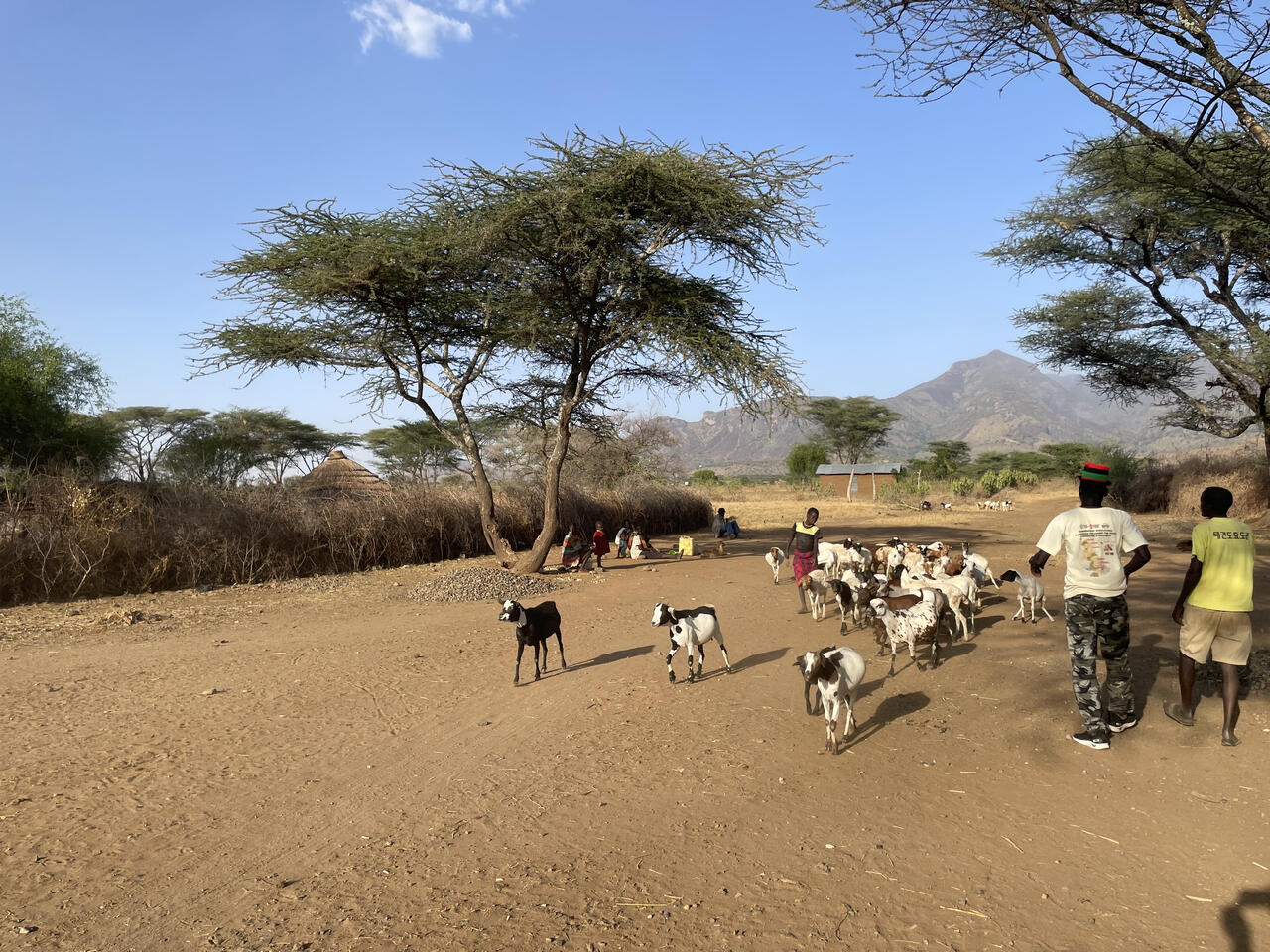Auch hier kommt ein kleiner Junge mit einer Herde Ziegen ins Dorf zurück. Teilweise werden 4 bis -5 jährige zum Ziegenhüten geschickt. Dann sind sie den ganzen Tag vom Dorf weg und hüten dort die Tiere. Wir haben diese Kinder auf unseren Fahrten häufig gesehen. Sie sind hierbei ganz allein.