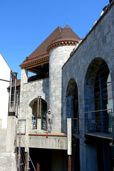 Heute morgen neblig.....Die Abholung hat gut geklappt, ungefähr 10 Minuten Fahrt bis zum Zentralmarkt, wo er uns abgesetzt hat. Gutes Timing, fast zeitgleich hatte sich der Nebel aufgelöst und wir sind umgehend mit der Standseilbahn 70m bis zur mehr als 900 Jahre alten Burg hinauf gefahren, um vor den anderen Touris oben zu sein. Herrliche Panoramasicht über die Stadt, im Hintergrund die schneebedeckten Gipfel der Karawanken.