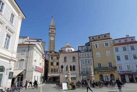 Piran ist bekannt für seine venezianische Architektur. Er gehört lt. Reiseführer zu den malerischsten Orten an der slowenischen Adria. Am Tartiniplatz steht eine Bronzestatue des berühmten Sohnes der Stadt, dem "Teufelsgeiger" Guiseppe Tartini (1692-1770). Das Geburtshaus ist für Besichtigungen geöffnet.