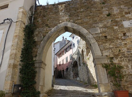 Nach wieder recht kurzer Fahrt sind wir über zuletzt recht schmale und kurvige Strassen auf dem Parkplatz von Grožnjan angekommen. Nur einige Autos und 1 Reisebus....im Sommer möchte ich nicht wissen, wie voll es wird.