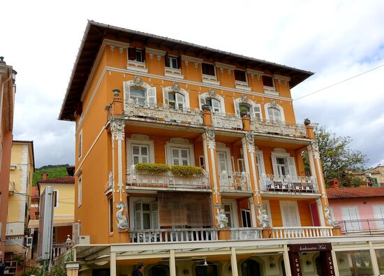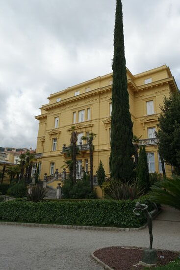 Im Ort gibt es viele historische Hotels und Villen aus der Habsburg Ära. Bekannt ist auch die Promenade Lungomare oder Franz-Joseph-Promenade, benannt nach dem Kaiser Franz-Joseph I., die 12 km zwischen Volosko und Lovran am Meer entlang führt. Die werden wir wohl nicht schaffen und uns mit ein paar Ausblicken auf Villen und Gärten begnügen müssen.
