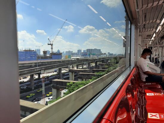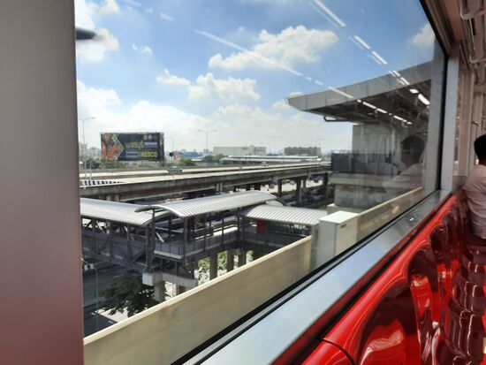 Das Umsteigen in die MRT funktioniert ohne, dass man ins Freie muss. Ich fahre nur zwei Stationen für 19 B und steige dann um in die BTS Green Line, also die Sukhumvitlinie der Hochbahn. Mit der fahre ich dann bis zum Südostbusbahnhof Ekamai. Das ist von der Strecke her bereits die teuerste Stufe für 44 B. Ich habe Glück und bekomme noch einen Sitzplatz.
