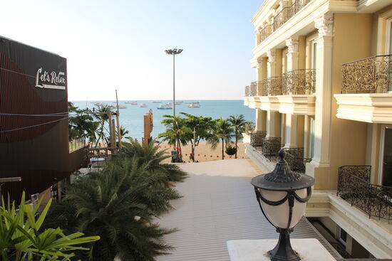 Der Busbahnhof Ekamai ist dann wieder nur ein paar Meter von der Hochbahnstation entfernt. Er ist der Busbahnhof, der am besten an das Hochbahn- bzw. Metronetz angebunden ist. Im Busbahnhof entdecke ich gleich einen Schalter der nicht nur nach Pattaya fährt, sondern konkret als Ziel angeschrieben hat Pattaya Beach und Festival Center. Da liegt mein Hotel nicht weit weg. Die Fahrt kostet 150 B und es ist wieder ein Minibus. Dieses Mal schaltet aber der Fahrer und meint gleich, ich soll mich An den Platz an der Schiebetür setzten, wo ich die Beine etwas ausstrecken kann. Erste sieht es so aus, als sei dieser Bus nicht so voll, wie der letzte, aber das täuscht. Es ist 13:00. Die Fahrt soll 13:15 starten. Wenig später ist es dann auch so weit. Bis wir am Stadtrand von Bangkok sind, hat er noch drei Mal gehalten. Hier auf einem kleinen Parkplatz bleiben wir dann ohne irgendeinen Kommentar für gut 20 Minuten stehen. Als wir weiter fahren sehe ich ein Schild „1 km Airport Suvarnabhumi“. Da sind wir aber einen schönen Umweg gefahren. Jetzt geht es aber auf die Autobahn. Am Ende lässt er in Pattaya außer einer Thai und mir alle anderen an der Hauptstraße, die an Pattaya am oberen Rand entlang führt, raus. Ich hatte schon gesagt, Festival Center und zeigte ihm jetzt meine Hotelreservierung. Tatsächlich hat er die Thai am Festival Center rausgelassen und mich dann bis vor das Hotel gefahren. Ein großer Bus wäre vielleicht etwas günstiger und bequemer gewesen, aber der hätte mich am Busbahnhof rausgelassen. Von da hätte ich dann noch einmal ein Songthaew oder Taxi benötigt.