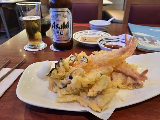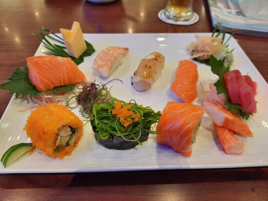 Zum Abendessen gehe ich ins Central Festival, eine große Shopping Mall nicht weit vom Hotel. Ich habe vorher schon recherchiert, dass es hier im 5. Stock eine Filiale von Fuji gibt, der vermutlich größten Kette eines japanischen Restaurants in Thailand. Dies sind meistens in Shopping Malls angesiedelt, fast in allen größeren Städten zu finden und bieten ordentliche japanische Küche zu vernünftigen Preisen. Ich nehme eine Miso Suppe, eine große Platte gemischtes Tempura und eine nette gemischte Platte Sushi und Sashimi. Dazu ein großes Asahi kostet 990 B.