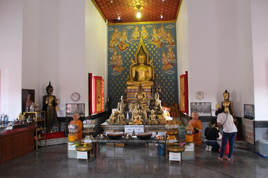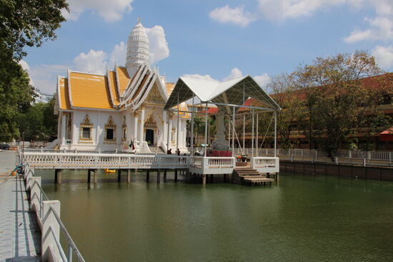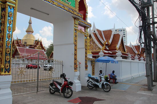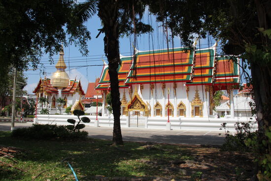 Ich biege in eine Seitengasse ein und dann wende mich dann wieder Richtung South Pattaya Road, die quasi die Grenze zu dem Gebiet bildet. Hier stoße ich dann auch gleich auf den Wat Chai Mongkron, einem großen recht hübschen Tempel mit angeschlossenem Kindergarten. Wir wären nicht in Thailand, wenn sich nicht in unmittelbarer Nachbarschaft zu einer der verrufensten Straßen der Welt auch gleich wieder ein beeindruckender Tempel befinden würde.