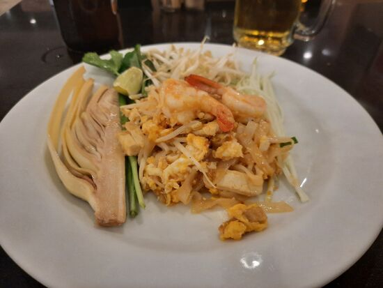 Abendessen war ich heute in einem kleinen Thailokal Mae Sri Ruen an der Beach Road. Anders als die meisten Thailokale gibt es hier zwar eine offene Terrasse, aber auch ein größeres geschlossenes Lokal mit AC. Ich bestelle Pad Thai Gung und etwas später dann noch frische Frühlingsrollen, also Sommerrollen. Die Pad Thai wirken „sehr übersichtlich“, sind dann aber doch etwas mehr als es im ersten Moment wirkt und geschmacklich gut. Es dürften nur wieder einmal etwas mehr Garnelen sein. Die Sommerrollen habe ich so auch noch nie bekommen. Sehr kompakt zu schmalen Rollen gewickelt wirkt der Teig anders als sonst, gefüllt sind sie mit Reisnudeln und einer Art Wurst oder so. Koriander kann ich nicht herausschmecken. Das Ganze ist mit reichlich Hoisin(?)soße übergossen. Daneben liegt jede Menge Chili, der da auch liegen bleibt. Es schmeckt ok, aber die Varianten, die ich aus Nordthailand, Laos und Vietnam kenne sind mir lieber.