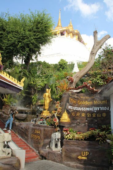 344 Stufen geht es nach oben. Die Stufen sind aber recht kurz und sehr flach, so dass es für mich einfacher ist, immer zwei auf einmal zu nehmen. Auf dem Weg nach oben befindet sich auch ein nettes kleines Kaffee, in dem der Kaffee nur 60 b gekostet hätte.