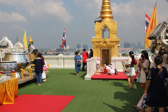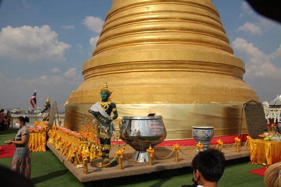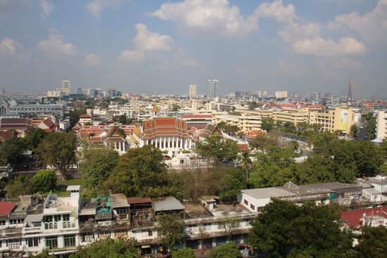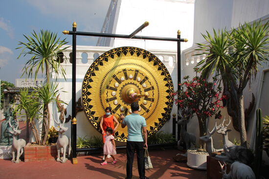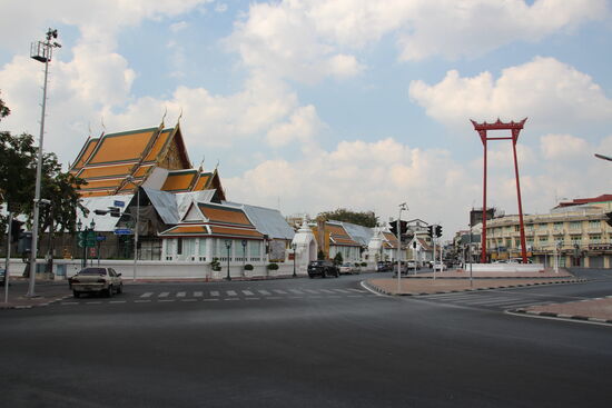 Wieder unten angekommen laufe ich grob in Richtung Grand Palace und komme am Wat Suthat vorbei. Die große Tempelanlage wird zurzeit gerade zumindest in Teilen renoviert. Ich erinnere mich, dieser Tempel einer der ersten war, für den ich als Ausländer schon vor vielen Jahren Eintritt zu zahlen hatte. Die Haupt Attraktion befindet sich aber vor dem Tempel. Es ist die Giant Wing, die Mittelstütze einer ehemals gigantischen Wippe.