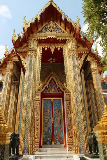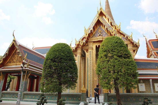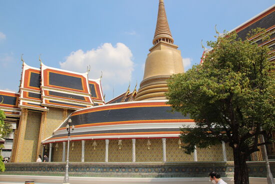 Inzwischen kann man mit der Metro relativ nahe am Wat Sakhet vorbei bis zum Wat Pho und damit auch dem Grand Palace fahren. Auf dem Weg von der Metro zum Wat komme ich an einem schicken kleinen Kaffee vorbei und denke, hier kann ich wenigstens kurz einen Kaffee trinken. Ich stutze etwas, ich zwei „ältere“ Thaidamen hinter der Theke sehe. Mit denen habe ich jetzt hier gar nicht gerechnet, sondern eher mit hippen jungen Thais. Ich bestelle eine Latte Macchiato. „Gibt es nicht.“ Es gibt nur schwarze Filterkaffee und man kann etwas Milch dazu bekommen. Der Kaffee schmeckt gut, aber 100 B dafür finde ich schon recht happig.