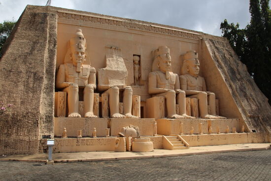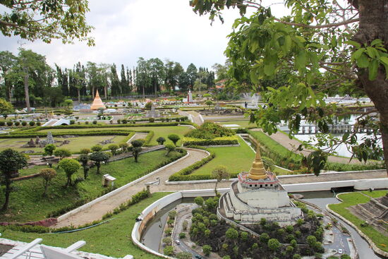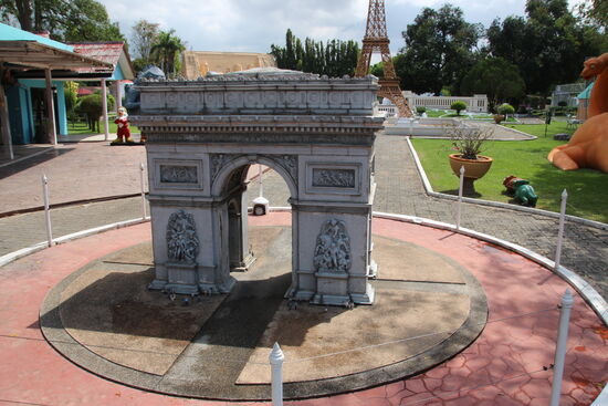 Dann geht es weiter zum Mini Siam. Laut Navi muss ich an einem U-Turn wenden und mich dann gleich links halten. Da finde ich aber keinen Hinweis auf das Mini-Siam. Also am nächsten U-Turn wieder gewendet und zurück, da sehe ich ein Riesengroßes Schild Mini-Siam. Darunter aber das Schild „Out“. Hm, das passt so aber nicht. Das „In“ Schild befindet sich 50 Meter weiter oben gegen die 4-spurige Straße. Also noch eine Schleife und einen U-Turn weiter oben genommen. Bei der Einfahrt rein, und auf einem großen Parkplatz gestanden aber ohne irgendeinen Hinweis auf Mini-Siam. Denn merke ich, dass dieser Parkplatz nicht zum Mini-Siam sondern zu irgendetwas anderem gehört. Also wieder raus auf die Schnellstraße und 30 Meter weiter die nächste Einfahrt rein. Hier bin ich richtig. Der Park kostet 300 B Eintritt. Außer mir ist genau noch ein Paar vor mir rein. Im Internet habe ich gelesen, dass sich jemand beschwert, hat über den Zustand der Modelle bei dem Eintrittspreis. Ich muss ihm zwar leider Recht geben, dass die Modelle tatsächlich teilweise etwas vergammelt wirken, aber wenn keine Einnahmen reinkommen…. Von was soll die Instandhaltung denn gezahlt werden. Ich finde den Park trotzdem amüsant. Wobei ich vielleicht auch etwas mehr davon habe. Für mich ist es ein nettes Spiel zu sehen, wo war ich schon, wo noch nicht und wo sollte ich denn noch hin. Das meiste dürfte ich tatsächlich schon gesehen haben. Die eine oder anderer Überraschung wie ein besonderes Fort in Dänemark oder einen reizvollen Tempel in Bangkok gab es dann aber schon.