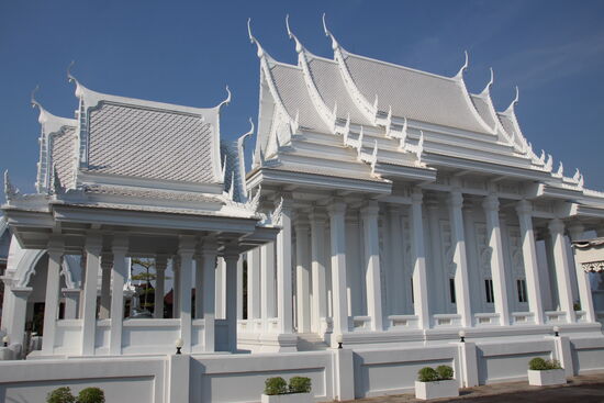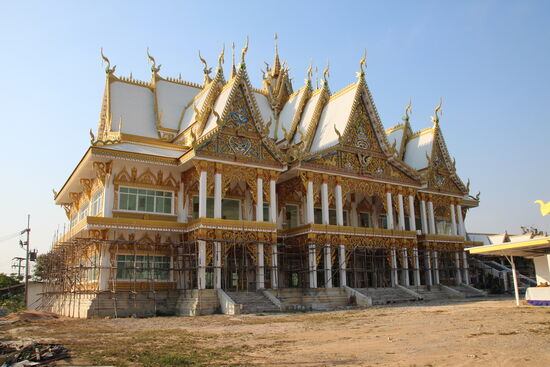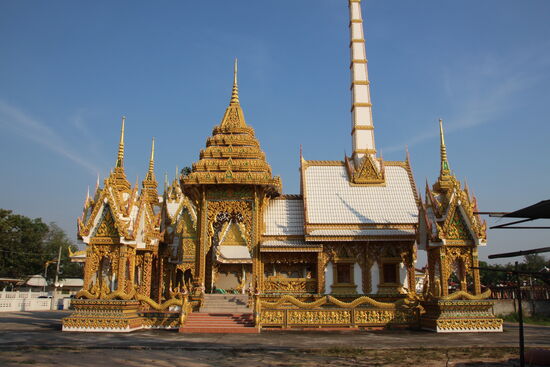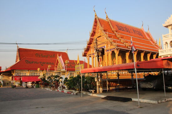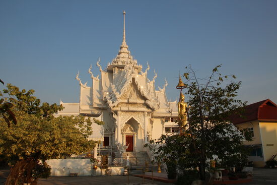 Der zweite Tempel auf meiner Liste ist der Wat Samakkhi Pracharam. Der schöne kleine BOT ist leider geschlossen. Das auffällige große Gebäude daneben wird wieder einmal gerade renoviert. Trotzdem kann man sehen, dass es sich um ein sehr elegantes Bauwerk handelt. Auf der anderen Straßenseite befindet sich das ebenfalls sehr schön gestaltete Krematorium und der kleine Friedhof des Tempels.