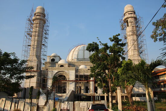 Wieder ein kurzes Stück weiter taucht eine kleine Moschee am Straßenrand auf. Nachdem das hier nicht ganz so häufig vorkommt, wieder ein Grund zu halten. Die kleine Moschee ist zu aber viel interessanter ist sowieso die Tatsache, dass dahinter eine sehr viel größere Moschee gebaut wird. Gibt es hier so viele Muslime? Ich weiß natürlich, dass es in Südthailand größere Gruppen von Muslimen gibt, schon wegen der Nachbarschaft zu Malaysia. Aber hier in Pattaya hätte ich das weniger erwartet.