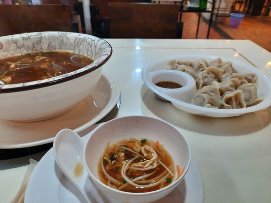 Zum Abendessen möchte ich heute in das Aroi Dim Sum. Das hat gute Bewertungen bei Google und sieht auch ganz interessant aus. Dazu muss ich mit der Metro ein paar Haltestellen fahren. Ich finde auch die Straße und das Lokal. Innen ist das kleine Lokal ziemlich voll und laut. Die junge Thai essen alle eine Art asiatisches Fondue. Die kleinen Körbchen, in denen sonst auch Dim Sum serviert werden, sehe ich nur Zutaten für die Töpfe zum Garen. Dim Sum sehe ich aber nicht. Den Restaurantnamen kann ich auch nicht lesen. Deshalb bin ich unsicher und gehe wieder. Am Ende esse ich dann am Anfang der Straße an einer großen Kreuzung in einem chinesischen Lokal. Das ist sehr schlicht ausgestattet, aber die Bestellung erfolgt über Laptop. Es ist auch recht gut besucht. Ich bestelle mir eine Suppe und Dim Sum, die mir die Bedienung empfiehlt. Die Suppe ist leider eine Pilzsuppe, aber die Brühe und manche Pilze schmecken nicht mal schlecht. Es kommt eine Schüssel, die eher für eine Familie geeignet ist. Dazu kommen dann nicht wie ich das kenne 3 oder 4 Dim Sum gefüllt mit Schweinefleisch, sondern ein Teller mit 15 Stück. Die sind tatsächlich recht lecker. Ich schaffe nicht alles. Mit einem großen Chang zahle ich ca 290 B. Ich gebe der Bedienung 320 und er will mir die 20 zurückgeben. Ich sage ihm, dass das für ihn ist. Er ist schon eher erstaunt als dankbar. Das kommt hier auch eher selten vor.