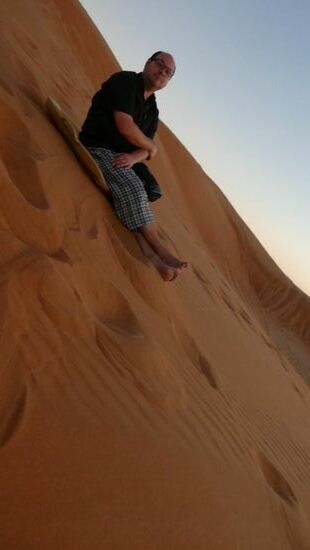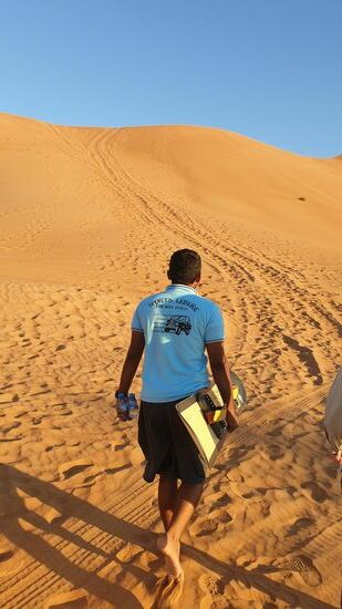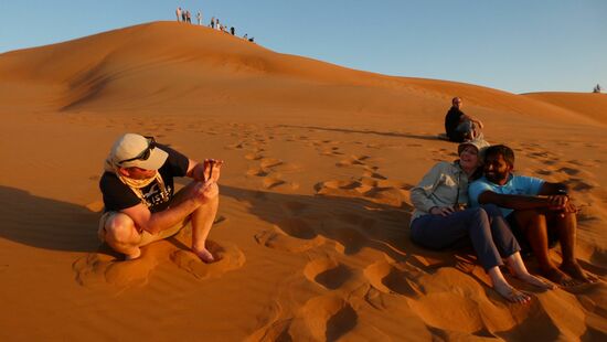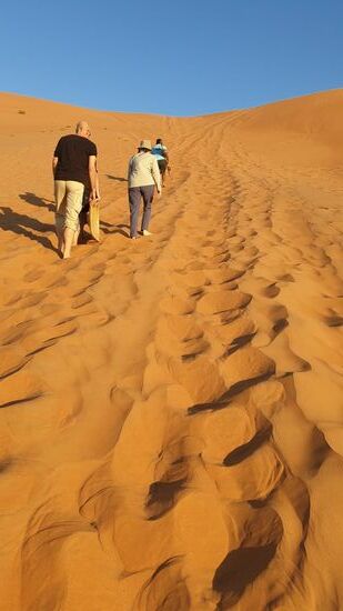 Heute laufen wir die Düne hoch, um nochmal den Sonnenuntergang zu schauen.