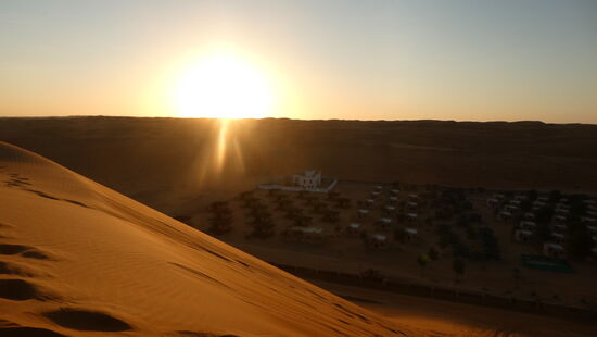 Das Camp ist sehr hübsch mit kleinen Bungalows, wir sind nur wenige Besucher. Zur Hochsaison sind wesentlich mehr Menschen im Camp, und zum Sonnenuntergang sind häufig ca. 30 Autos auf den Dünen.