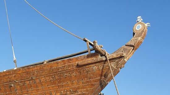 Wir besichtigen eine alte Dau. Daus sind traditionelle alte Segelschiffe. Dann schauen wir ebenfalls in einer Dau Werft vorbei.