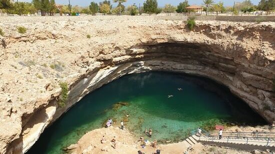 Bevor wir in Muscat ankommen, halten wir noch kurz an einem Sink Hole.