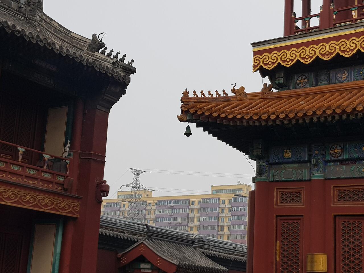 Um zu wissen, in welche Höfe wir am besten gehen konnten, sind wir einfach dem empfohlenen Rundgang in unserem Reiseführer gefolgt. Das Viertel dort ist allgemein ganz hübsch, da auch viele kleine Imbisse und Läden mit diversen Dingen die Straßen säumen. Am Ende dieses Rundgangs sind wir zum Trommel- und Glockenturm gelaufen. Wir haben uns beide Türme allerdings nur von außen angesehen, da wir für diesen Tag noch ein recht straffes Programm hatten. Wenn man etwas mehr Zeit hat, wird empfohlen, die Türme zu besteigen, da man von oben eine sehr schöne Aussicht auf Pekings Gassen im Stadtkern haben soll. Wir haben uns entschieden, von dort zu Fuß zum Lama-Kloster zu laufen, um einfach noch etwas weiter in das Stadt- und Alltagsleben der Pekinger einzutauchen. Immer mit dem Gedanken im Kopf: Der Weg ist das Ziel! Jetzt kommt vielleicht wieder die Frage auf, wie man das mit einem knapp zweijährigen Kind schafft und da wir uns hier wieder ein kleines bisschen mit den Entfernungen verkalkuliert hatten, ist das durchaus berechtigt. Aber auch hier war unser kleiner Buggy super – denn in Peking und auch in allen anderen Städten, die wir besuchten, war die Beschaffenheit des Pflasters top, sodass man überall problemlos langrollen konnte. Wenn man aber keine Lust hat, diese oder andere längere Strecken zu laufen, können wir auch hier wieder das Netz an öffentlichen Verkehrsmitteln oder auch das Taxi empfehlen, das an diesem Tag zu späterer Stunde auch bei uns noch zum Einsatz kam.