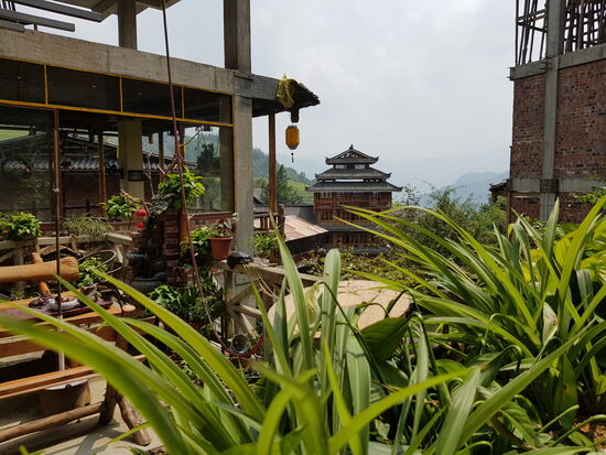 Auch dorthin sind wir vielleicht eine knappe Stunde gelaufen. Direkt am Straßenrand konnten wir von einem kleinen Stand Passionsfrucht probieren, auch sehr lecker und seeehr gesund! In diesem Dorf wartete dann leider schon unser Bus, der uns wieder zurück nach Guilin brachte. Eigentlich haben wir gedacht, dass unsere Tochter spätestens auf der Rückfahrt durch die vielen Eindrücke einschläft, aber weit gefehlt, quietschvergnügt wollte sie die zwei Stunden bis Guilin weiterhin unterhalten werden... In unserem Hotel haben wir dann direkt den Pool auf dem Dach unter freiem Himmel genutzt. Es war eher ein großer Whirlpool als ein Swimmingpool, aber super, um den Sonnenuntergang über Guilin zu genießen.