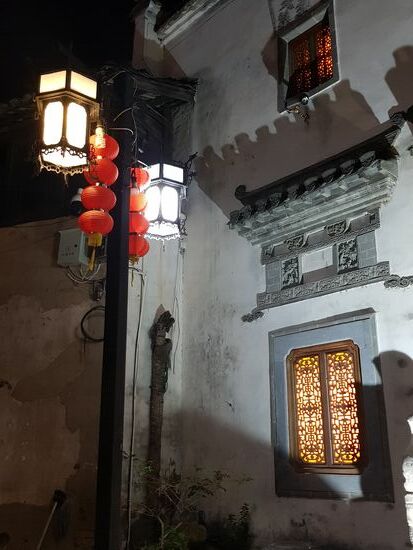 Nachdem wir uns etwas im Hotel entspannt hatten, schlenderten wir an diesem Abend wieder die Shangliyang Straße bis zum Ende entlang, überquerten diesmal die Brücke über den Hengjiang Fluss und landeten in der Alten Straße von Tunxi. Da wir dieses Highlight schlichtweg in unserem Reiseführer übersehen hatten, waren wir umso mehr überrascht, dieses kleine Juwel zu finden. Diese Straße bildet das alte Tunxi mit sehr schön rekonstruierten Häusern nach.