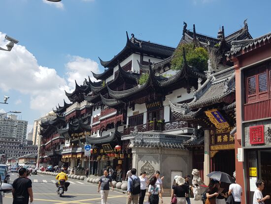 Anschließend ging es in die "Altstadt" Shanghais, die direkt dahinterliegt. Die Altstadt besteht aus einem Ensemble aus renovierten Häusern im traditionellen Stil, die durch ihre Anordnung ein eigenes in sich stimmiges Viertel bilden. In der Mitte des Viertels befindet sich die Jiuqu Brücke mit ihren neun Biegungen, die ein sehr beliebtes Fotomotiv ist.